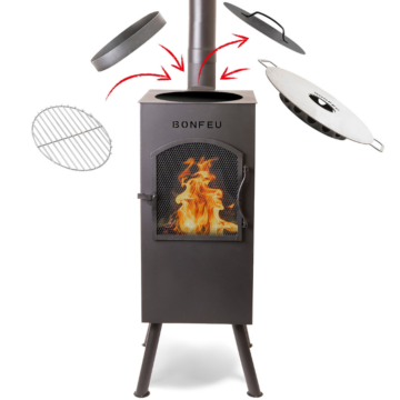 La BonFeu BonGiano SP Negra aporta calidez, ambiente y la posibilidad de cocinar al aire libre. Esta chimenea de jardín es ideal no solo para disfrutar del calor, sino también para asar carne o pescado gracias a la parrilla incluida. ¡Hacer una barbacoa sobre un auténtico fuego de leña es una experiencia que no querrá perderse!